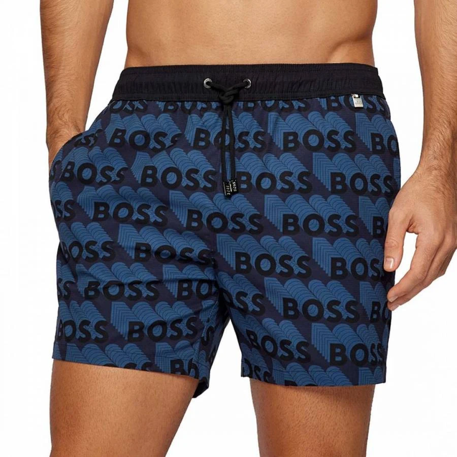 Boss Navy All Over Print Swim Shorts