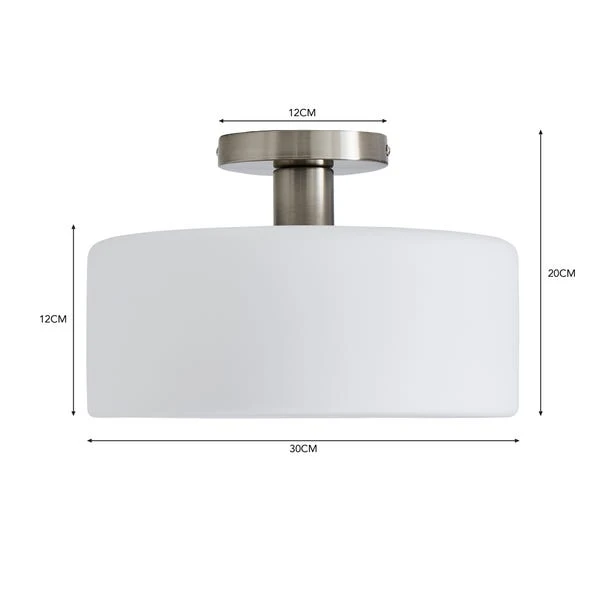 Introducing the modern, clean and bright design of the Amelie Opal Satin Nickel Glass Flush Ceiling Fitting featuring a contemporary white disc shaped glass shade sitting semi flush to the ceiling, ideal for hallways. The minimalist style of the Amelie Opal range is sure to coordinate with your current décor as it is also available in a gold plated finish and can be paired with other matching pieces from the Amelie Opal range to achieve a synchronised look.