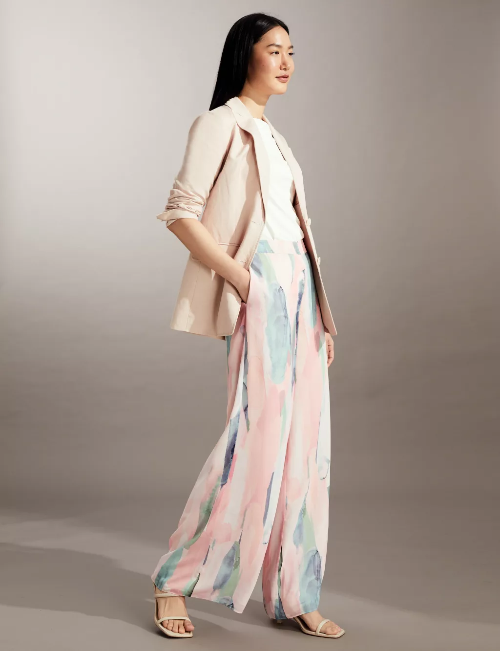 Light georgette fabric and a watercolour-inspired print give these Jaeger trousers a soft, ethereal quality. They’re wide through the leg for a drapey silhouette and fall to the ankles. Match yours with the coordinating top for an elegant ensemble.