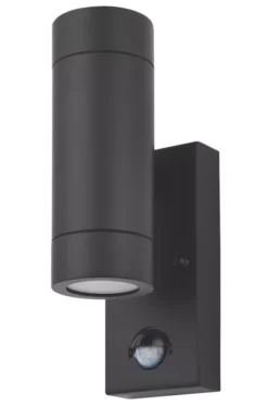 Stainless steel construction. Projects light both upwards and downwards and is fitted with a PIR sensor.