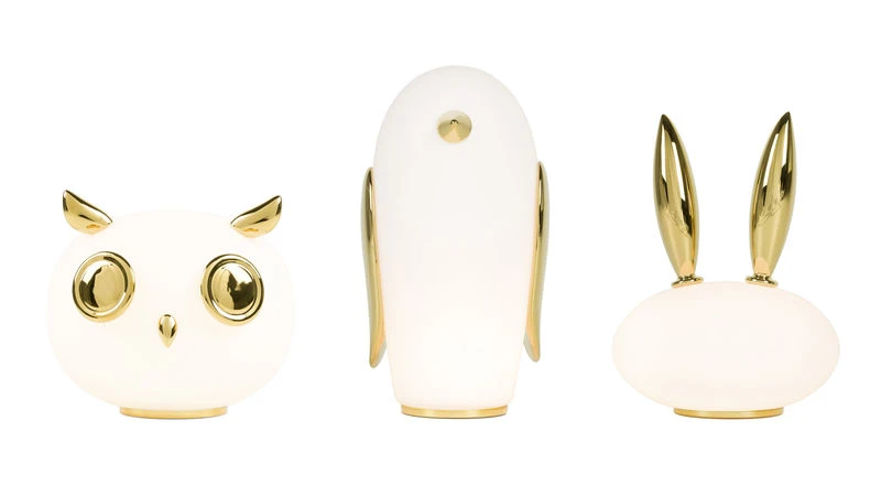A jovial, fun and elegant mood is in the air with Moooi… Created by Marcel Wanders, this pretty series of table lamps is available in three different forms: a penguin (Noot Noot), an owl (Uhuh) and a rabbit (Purr). Although each of these lamps has its own character, they all have delicate and rounded lines, perfect for providing a little softness to your interior. Made from frosted glass, these wonderful table lamps are decorated with gold-plated ceramic details. These little golden touches grant them an incredible elegance, combining perfectly with their warm and endearing design… PLEASE NOTE. The temperature may be high after prolonged use: must not be handled by young children