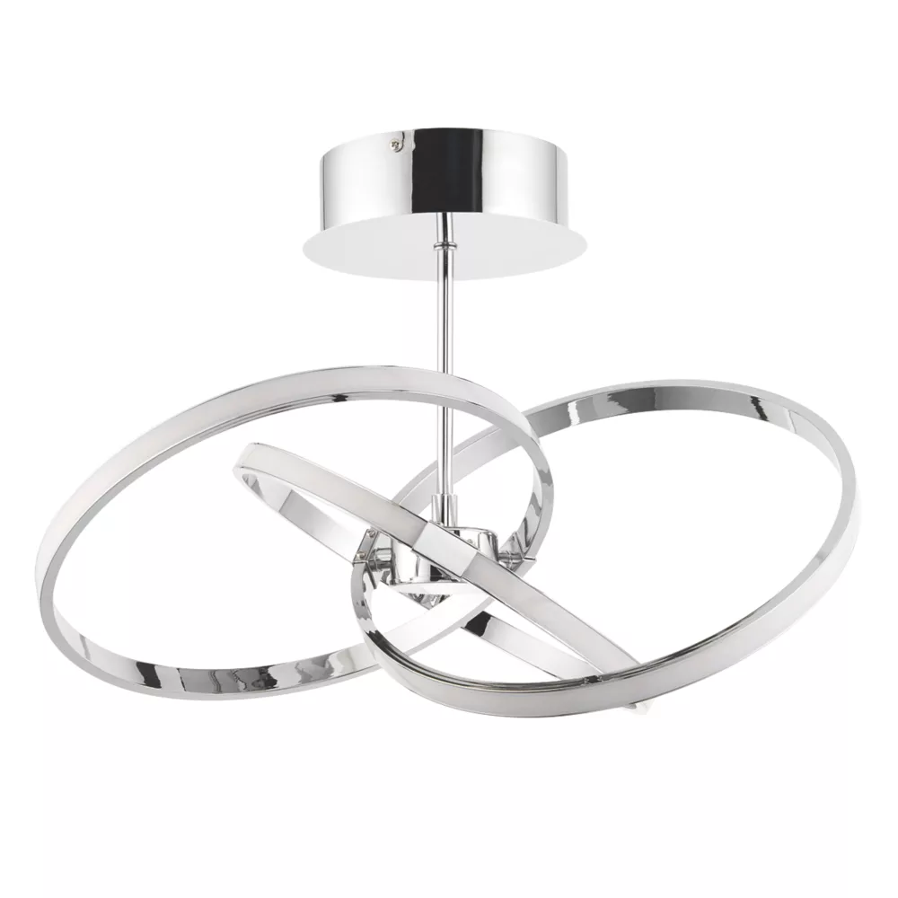 Remi chrome contemporary 3-lamp ceiling light with adjustable rings. Contains Integrated dimmable LED. Ideal for low ceilings.