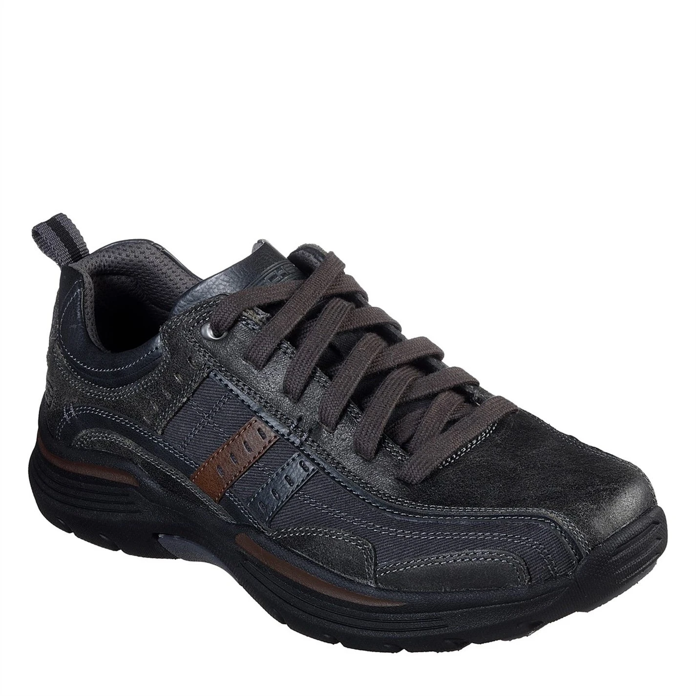 Revitalise your footwear with the Expended Manden Trainers brought to you by Skechers. Made from a suede and synthetic upper sits with a memory foam insole for all day comfort, this striking prair features a round toe design, textile lining, lace up fastenings, suede pannelling, perforations for breathability and a pull tab to the heel. Decorated in an all over solid block colour, the design is elevated with the brand logo to the tongue, while the signature S motif to the heel sign off this sleek pair