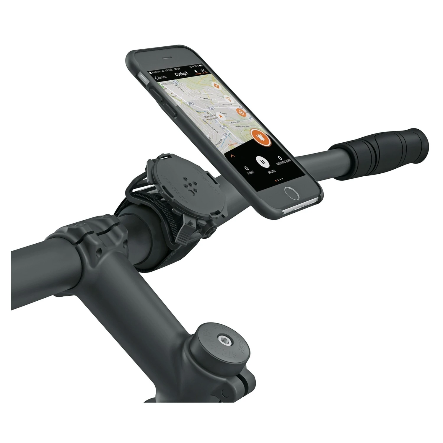 Simple, fast and universal: With a robust hook and loop fastener and two locking rings, the COMPIT ANYWHERE mobile phone holder can be mounted securely on the handlebars, stem or top tube. The system can also be easily attached to buggies and removed again. The 30 cm long, rubberised hook and loop fastener ensures a perfect hold; the locking rings are slip-resistant and protect the surface.
