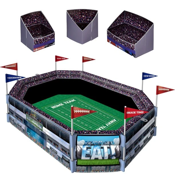 Reusable because the individual compartments are washable and the cover is inflatable, so it can be easily stowed away and used for the next Superbowl.